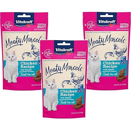 Amazon Com Vitakraft 3 Pack Of Chicken Meaty Morsels Cat Treats 1 4 Ounces Each With Salmon And Omega 3s Pet Supplies